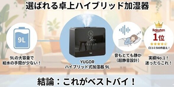 1️⃣ YUGOR 9L AIハイブリッド式加湿器(楽天1位)